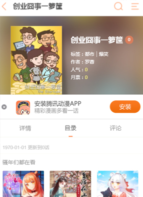 简介:漫画《创业囧事一箩筐》简述:这是一群不谙世事的年轻人,心中满怀着许多的梦想!他们为了发扬民族文化,振兴东北经济,怀抱着被嘲笑的超级远大理想,于是他们开始凑到一起创业。就算是一路上坎坷颠簸,并且还有偶尔捡宝,他们身边的囧事不断的波澜征程正在开启!也是你筑梦的缩影!